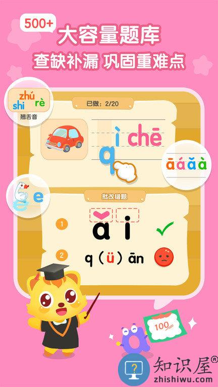 拼音课程全新升级,多样练习题库,实用拼音宝典,动画讲解拼音重难点