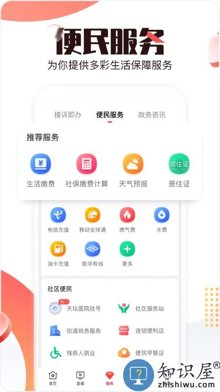 紧跟实时动态,可以查询本地的实时资讯,了解本地的大小民情;服务百姓生活,可以在app上完成政务服务,如:税务服务、公积金查询、身份证办理,足不出户即可享受便民服务。