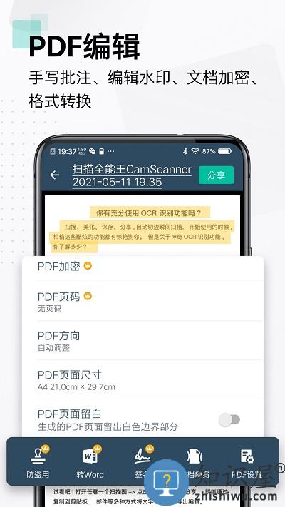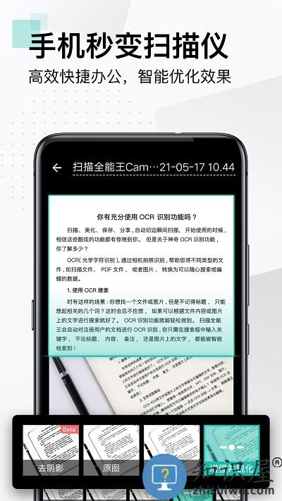 CamScanner扫描全能王,将智能手机变成随身携带的扫描仪。方便快捷地记录管理您的各种文档,收据,笔记和白板讨论等。并通过智慧精准的图像裁剪和图像增强演算法,2265保证您扫描的内容清晰可读。