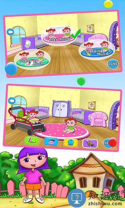在安娜托儿所里面,小朋友还可以给宝宝换装,喂饭,学习如何让小宝宝安稳坐在婴儿车里等,超多的婴儿护理和育儿知识等你来发掘哦~~