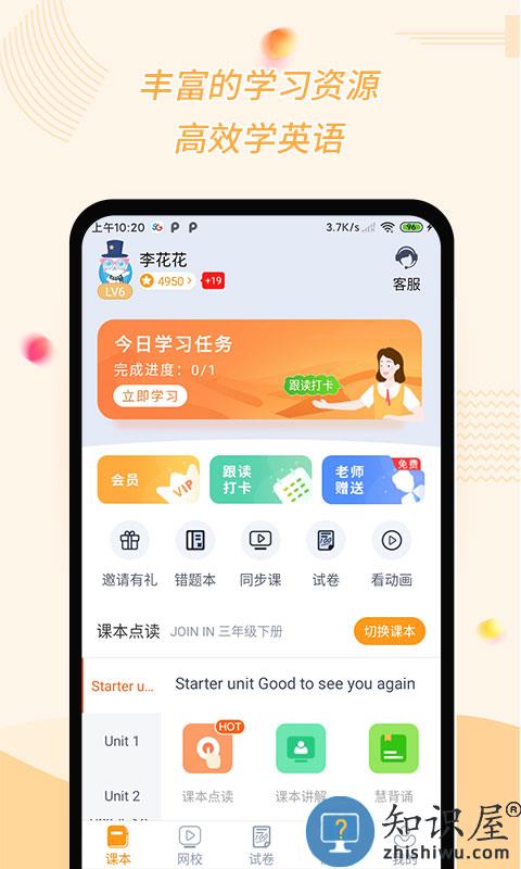 2)课本学习:同步校内外课本,沉浸式体验课本,支持课本点读、连读、复读、跟读测评,还有课本翻译、课后小练习看答案、课本听力文稿等;
