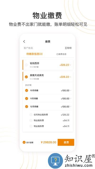 3、自动生成物业账单,在缴纳物业费用的时候可以对物业账单明细进行直接查看;