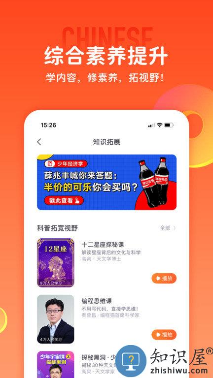 少年得到专为青少年打造的在线学习软件,汇聚专业的教学团队,为7-15岁的孩子提供定制化的学习服务,帮助孩子们梳理各学科的知识点和考纲重点,让学习更高效。