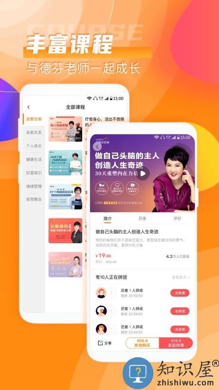 张德芬老师、卢熤翎老师等国内外名师亲临,为您打造丰富的个人成长课程。