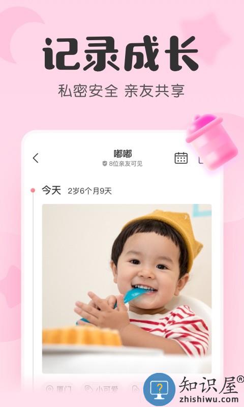 支持小视频、照片、文字,记录宝宝的成长点滴;可以设置家人共享,牵挂的亲友,可以同时看到宝宝的记录;仅限邀请的亲友可见,严格保护宝宝的隐私.