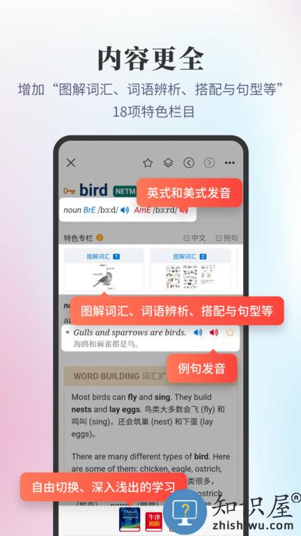 提供读音、词形变化、词法、句法、语用、搭配、词源等信息,并设置“用法说明”、“词汇动态”专栏,小型教学词典与大型查考词典之全新结合