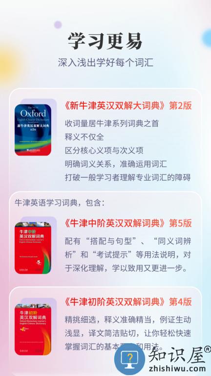 是英语教师、英语研究人员、翻译工作者及其他中等以上水平的英语学习者之首选权威工具书。欢迎下载。中国超过80%的英语学习者使用牛津词典。选择牛津词典,品味原汁原味的正统英语,与大师一起发现英文之美。 根据《新牛津英语词典》(The New Oxford Dictionary of English)英语原版2010版,对初版精研细磨,全面校订,译文更准确自然,体例更统一规范。优化部分词条义项排列,使之更科学合理;新增“词汇动态”栏目,勾勒一些词语自本世纪以来在意义或用法上的显着变化;对词目及其变化形式尽可能加注国际音标,以适应中国读者需求。