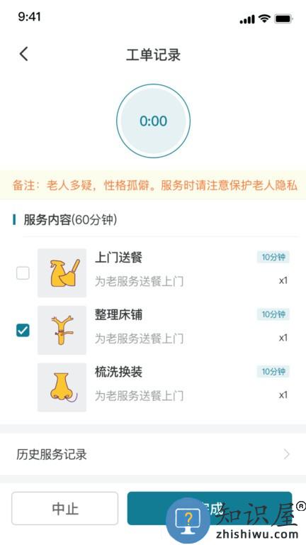 3、查看历史,护士能够查看全部服务历史记录信息。