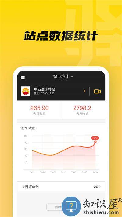 可以通过应用查看每天单量,实时了解2265站点洗车情况和单量。