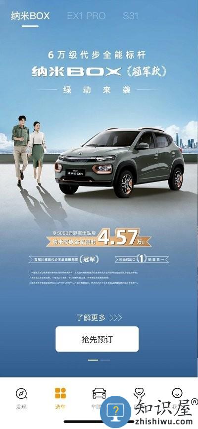 选车:可以全面了解东风纳米汽车产品优点,进行线上预约试驾,在线购买个性化配置的爱车。