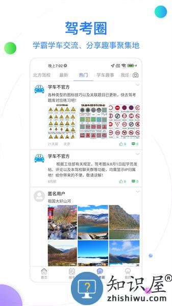 2、驾考圈,学霸学车交流,分享趣事聚集地。