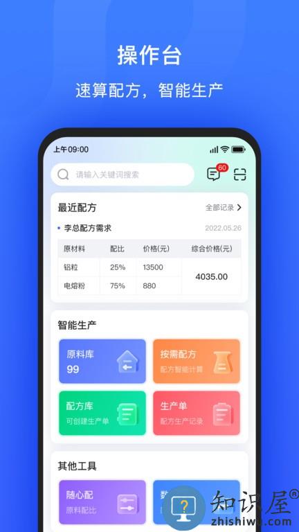 算算配方APP,是一款配方计算智能生产软件,为钢铁、耐火材料、冶金等生产型企业提供智能配方计算和智能生产等功能,突破算法壁垒,提升办公效率,缩减成本损耗,解决企业配方和生产难题。