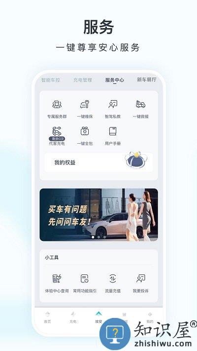 爱车:个性化定制专属座驾、金融计算器、额度测试等购车服务,数字钥匙、电桩管理和共享出行等