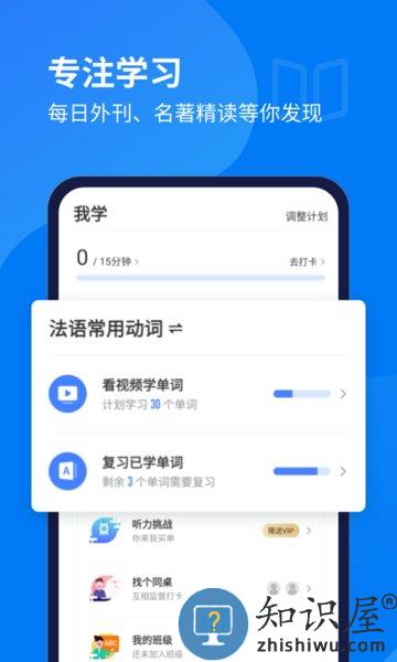7、起床闹钟功能,每天起床为您播放当天最新的法语听力;