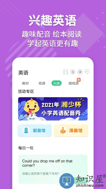 每日一句、英汉互译、英语故事、绘本动画等栏目为学生们提供更多学习资源。