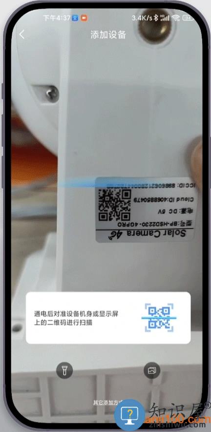 将摄像机通电,等待指示灯长亮后点击“添加摄像机”,然后扫描摄像机身上的二维码