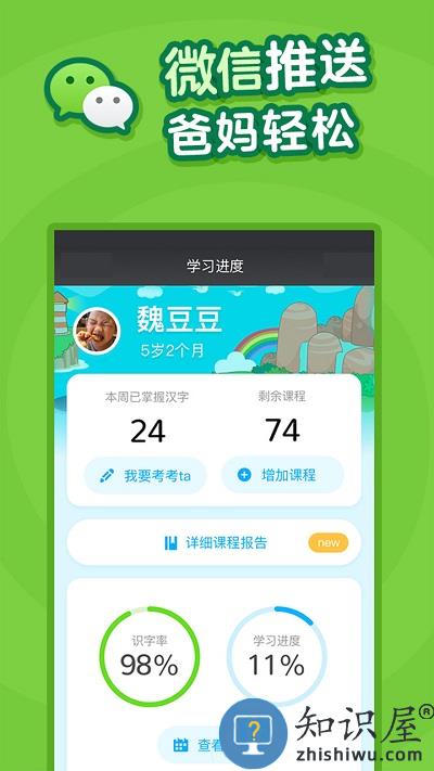绑定自己的微信账号,随时都可以查看孩子的学习进度。