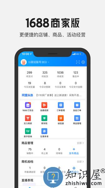 1688商家版,作为1688的卖家移动工作台,支持在移动端进行店铺管理、商品管理、订单管理、经营数据查看、旺旺接待、直播、查看官方通知等功能。