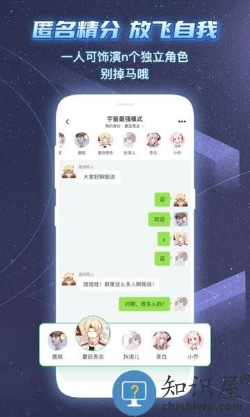 1、聊天消息:随时随地收发好友和群消息,一触即达。不仅可以自己和自己换身份聊,群里还可以精分哦。