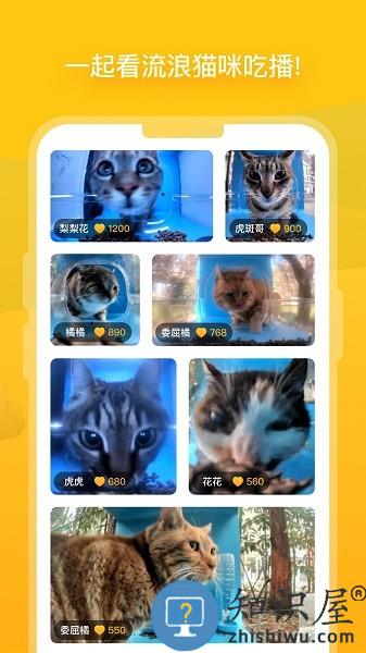 在猫屋直播间你可以远程投喂流浪猫猫、狗狗、刺猬、松鼠等小动物,有激萌小奶猫与猫屋志愿者一起在镜头前感谢”姨姨、姨夫“的爱心投喂。