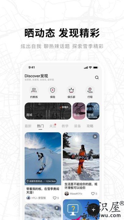 通过滑呗,可以在雪场发现最有趣的雪友,最知名的达人,并邀约他们一起开心滑雪。