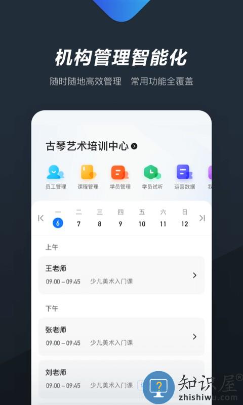 熊夫子商家版app是为机构商家打造的管理软件,机构用户能够在这里查看每个老师的课程安排,支持在手机上查看学员的试听情况,便捷的管理员工和老师,能够查询学员的购课记录。