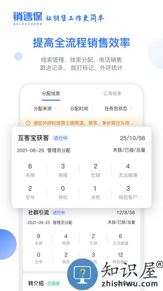 2. 线索全流程管理,对线索、意向、成交等拨打跟进状态进行精细化统计管理,建立企业数据库,方便多次挖掘,增加成交客户。