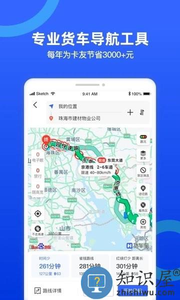 货车宝拥有覆盖全国的限行、限高、限宽、限重信息,根据卡友车辆信息、路线偏好和实时路况,为400万卡友提供专业货车导航,避免卡友误闯禁区导致扣分罚款。