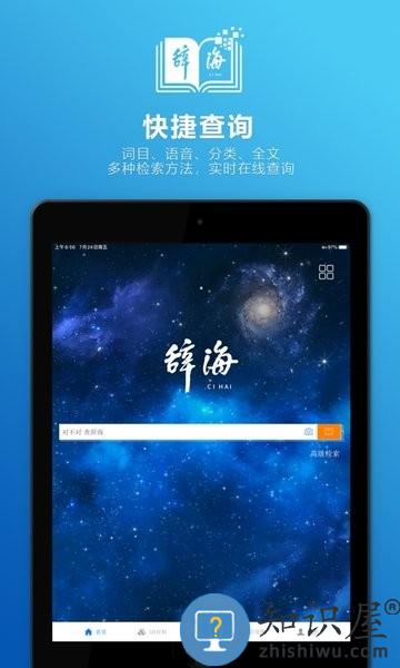 4、精美的首页背景设计,上面采用了星空时的精美设计背景,展示了辞海庞大的主题;
