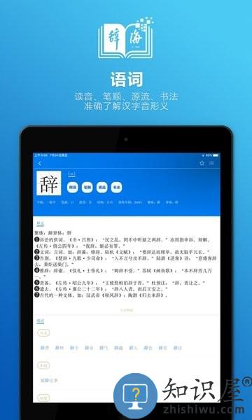 《辞海》由上海辞书出版社出版,是总词条约13万条,总字数约2350万字,首次推出APP版,我国以字带词,集字典、语文词典和百科词典主要功能于一体的大型综合性辞典,用户可随时随地随手查阅,为用户提供生词同步学习服务,可以随时随地收藏和复习生词。