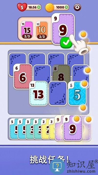 ·卡牌合成玩法的休闲益智小游戏,玩家需要正确地将上方带有数字的卡牌有序的移动到下方卡槽