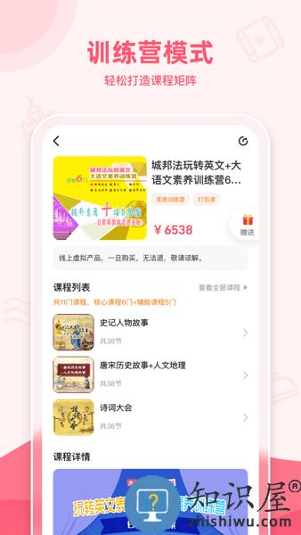 在睿知点APP,可以打造自己专属的课程体系,并匹配多样化工具,如专栏、训练营、会员、助学服务、虚拟/实物商品管理等。