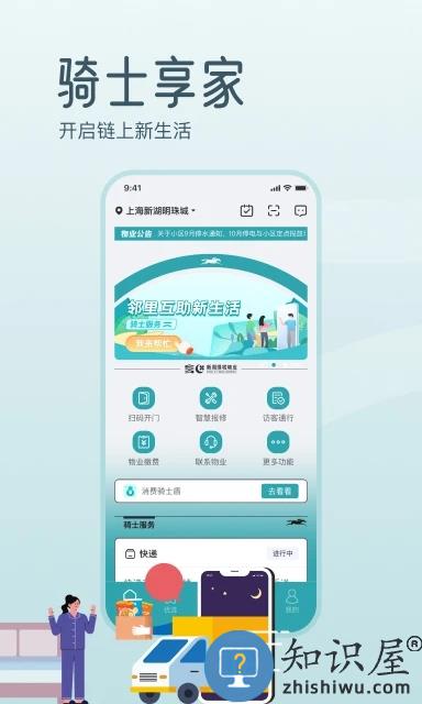 骑士享家是一个享受智慧生活的服务工具。连接物业、居民、商户等各参与方,以区块链为基础,为住户提供品质生活的智慧社区服务平台。