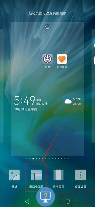 返回手机桌面,双指收拢呼出屏幕布局工具,点击【窗口小工具】。
