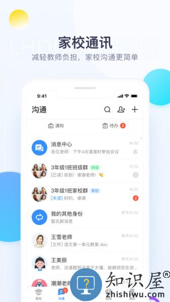 【沟通】支持用户接收各种即时消息、应用消息,提供面向学校场景的便捷沟通能力,满足多种用户沟通需要;