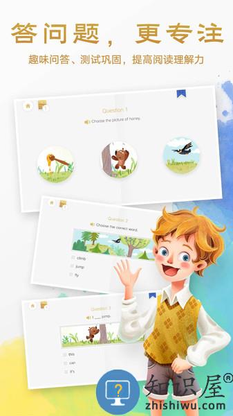 3、创意设计趣味阅读与英文分级阅读两大部分内容:趣味绘本阅读中文繁简体、汉语拼音、英文阅读一键切换,多角色生动演绎;英文分级阅读原创更适合中国孩子的科学分级法,分阶段提升英语词汇、句型、语法、阅读能力,让孩子在家达到美国小学生阅读水平。