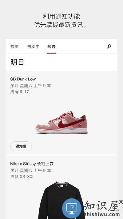 1、在本页面下载安装并打开SNKRS 中国app,在预告中点击即将发售的鞋子