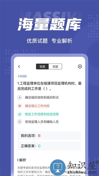 针对监理工程师进行开发的手机软件,在这里可以更好的知晓不同的题库信息