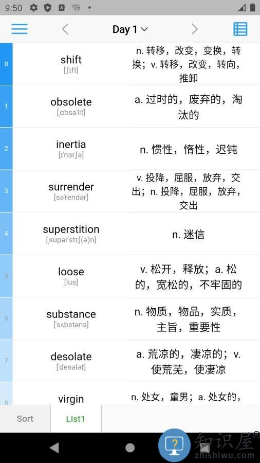 2.长按底部当前List,可以进入熟词表,进行恢复。