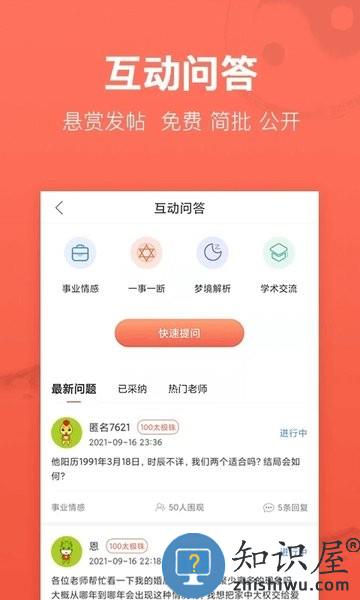 4、原知天命现高人汇平台邀请众多国内知名玄学大师,帮助大家提供心理咨询服务,给大家在人生迷茫的时候指点迷津。