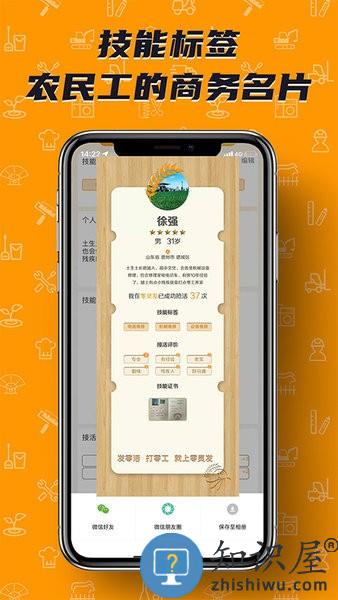 3、增加了技能标签下载及转发功能,打造农民工专属“打工名片”。