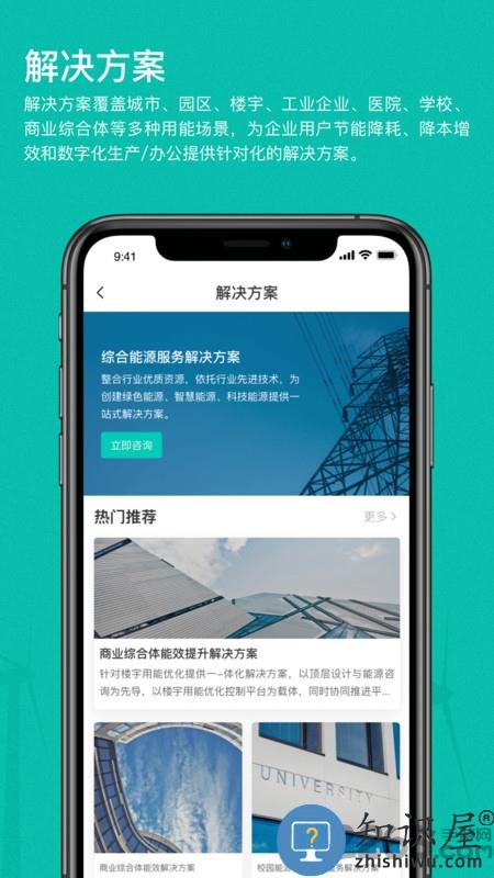 解决方案覆盖城市、园区、楼宇、工业企业、医院、学校、商业综合体等多种用能场景,为企业用户节能降耗、降本增效和数字化生产/办公提供针对化的解决方案。