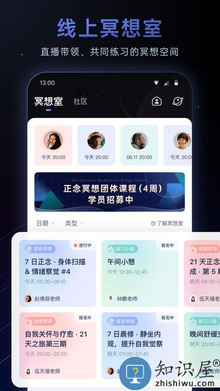 - 多维度陪伴式练习,每个练习进行步骤拆解、配备精讲;学员交流感悟,共同成长