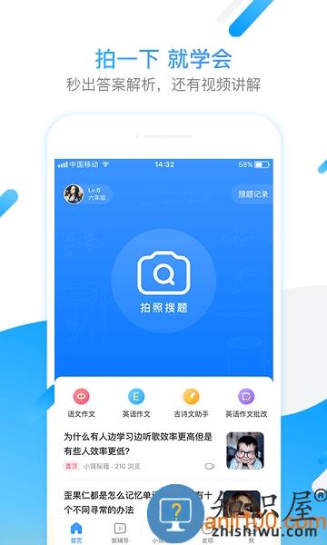 4、软件小巧仅2.0m,带来更快的APP和相机打开速度,还有更快的搜题速度,只为最快的把答案给你。