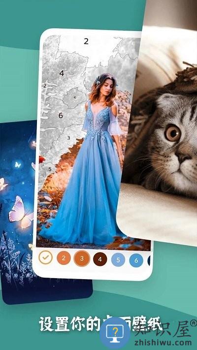 ·玩法简单容易上手,只需用手指点击图画中色号相对应的色块,轻轻一点即可填色,无需纸笔