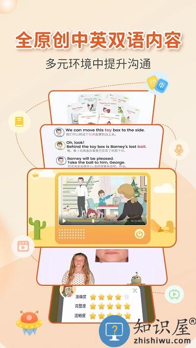 2、玩配套线上交互式童书及故事配音,看儿童示范的核心词句的发音视频,并在跟读后进行Al评测。