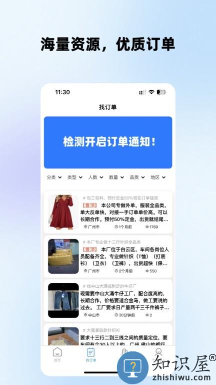 掌缝app最新版是服装行业的管理软件,支持在手机上找服装相关的工厂和订单,有资源的可以找厂子进行加工,工厂可以在这里找订单货源进行生产制作,交易非常方便。