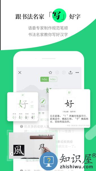 4.标准笔顺、写法讲解、名家书法视频全方位助您写好字:包含5816个汉字的标准笔顺,2498个汉字写法讲解,同时邀请书法名家讲解欧体、颜体两大字体书写要点,覆盖3000个汉字,共计6000余个书法教学视频持续更新,为中小学生打造在家也能上的书法课。
