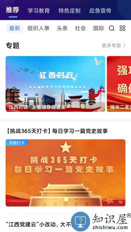 学习路上界面,主要放置党的实时动态、党的相关新闻以及在线教育宣传。功能作用:为党员提供最新的党务新闻资讯以及学习平台。