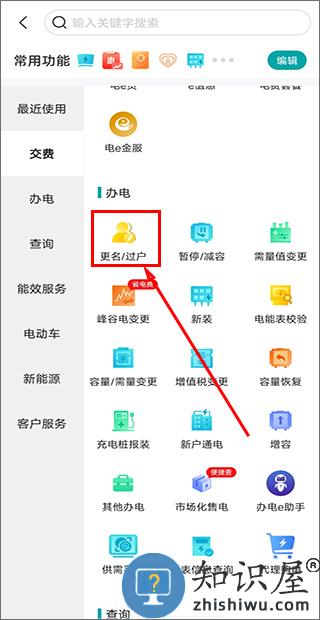 2、在“更多”页面我们可以看到所有的用电服务,点击“办电”然后再找到“更名/过户”进入;